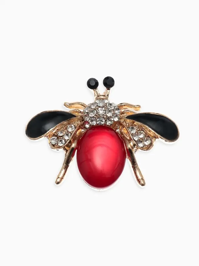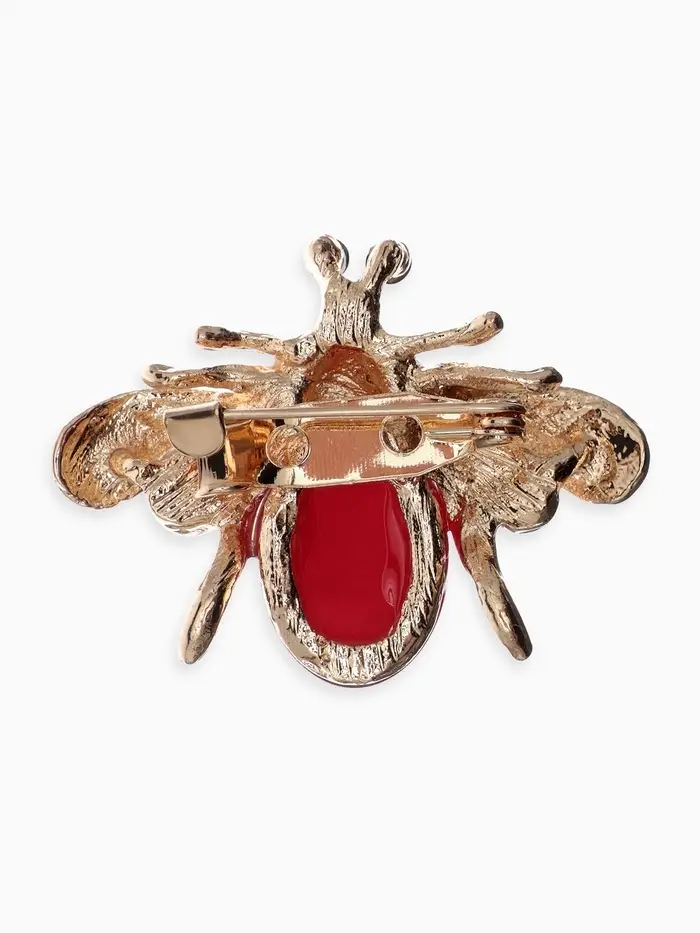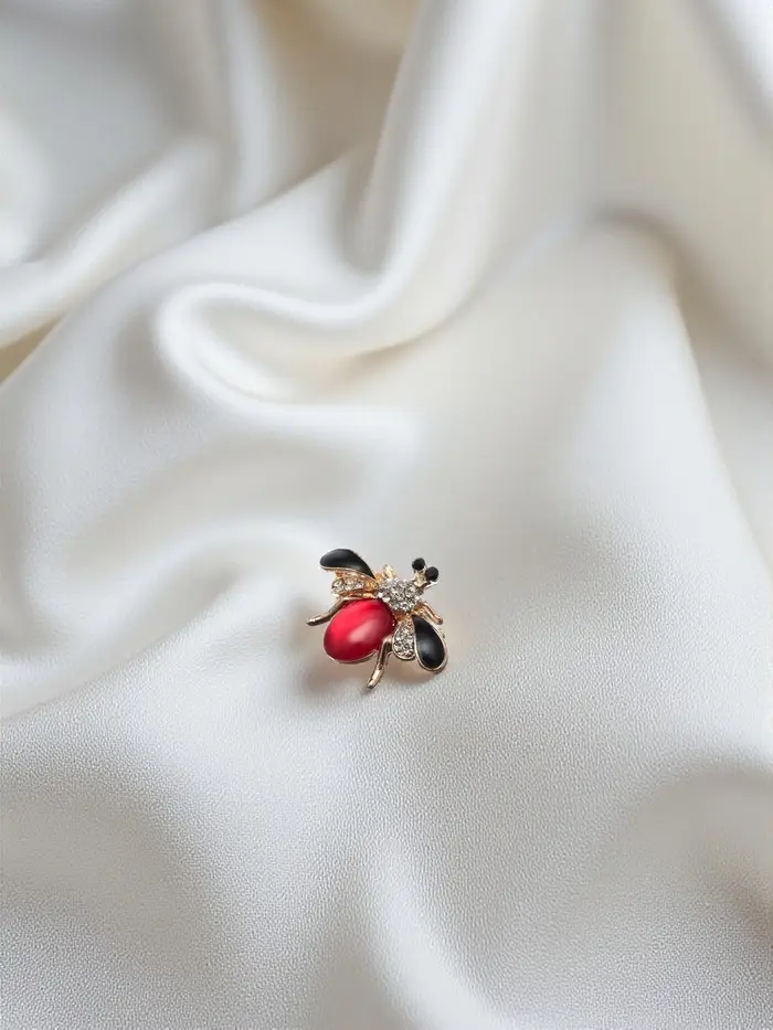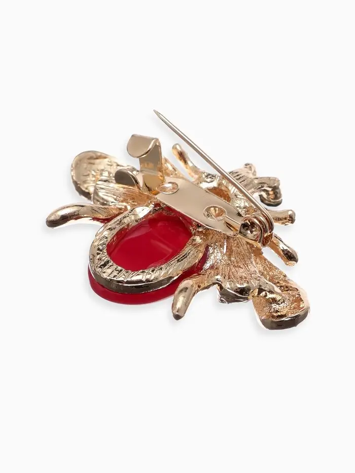 Погрузитесь в мир изысканных украшений с этой удивительной брошью в виде мухи, которая словно расправила свои яркие крылья. Каждый элемент этого аксессуара, выполненного в золотом цвете, притягивает взгляды и добавляет нотку игривости в любой образ. Красный цвет страз и эмали придает броши яркость и динамичность, что делает её идеальным акцентом для смелых модниц.