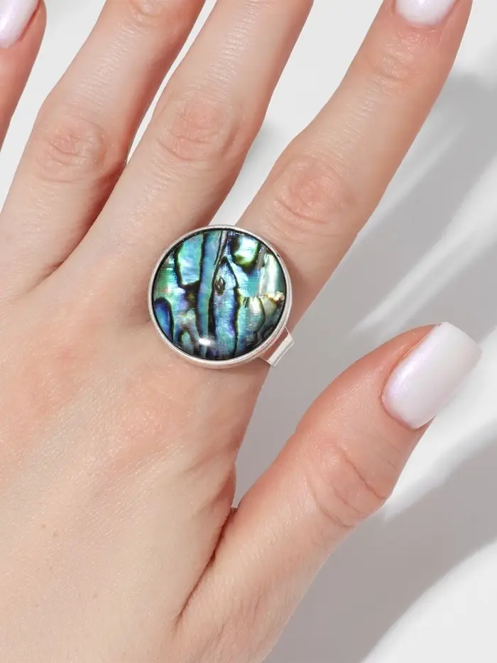 Эстетика и комфорт: Безразмерное кольцо с галиотисом станет отличным вариантом для тех, кто ищет оригинальную бижутерию с природными мотивами. Длина декоративной части составляет 2,2 см, что делает аксессуар заметным, но не перегружает руку. Порадуйте себя или близких стильным подарком, который несет в себе частичку морской магии и гармонии!