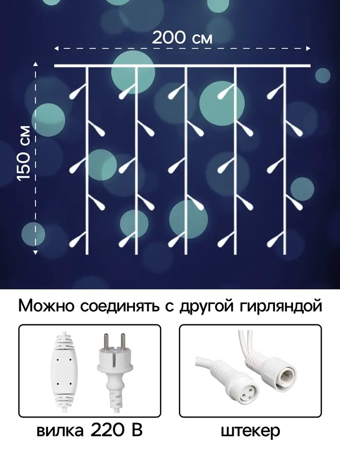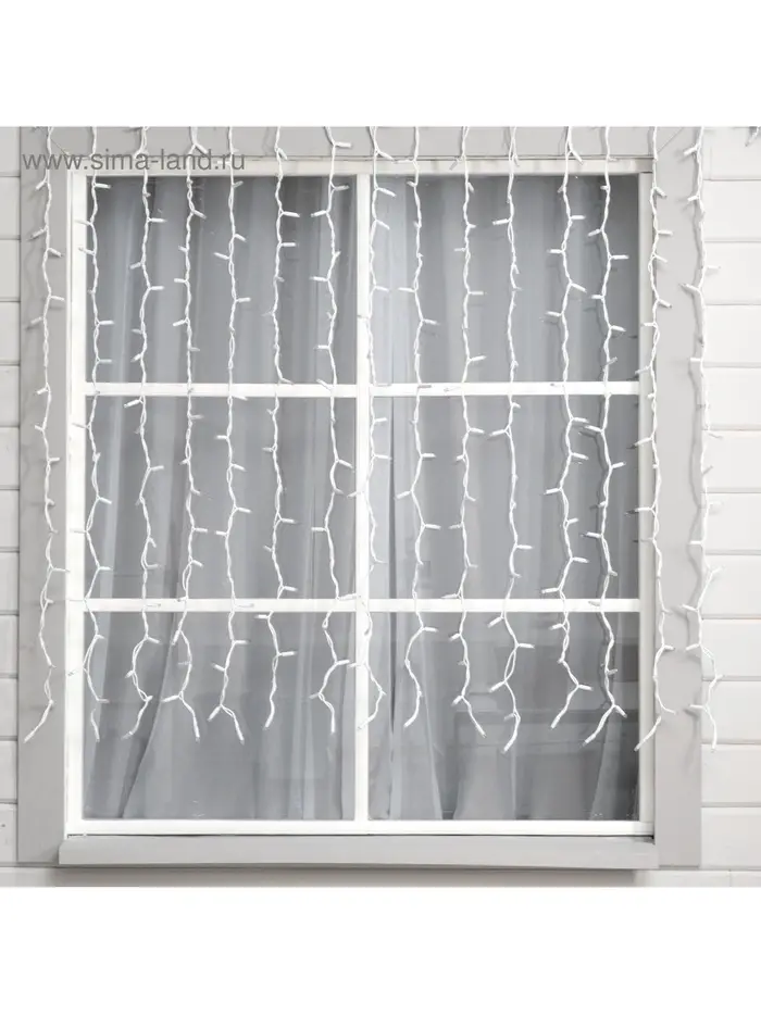 Гирлянда «Занавес» 2×1.5 м, IP65, УМС, белая нить каучук, 300 LED, свечение белое, 220 В