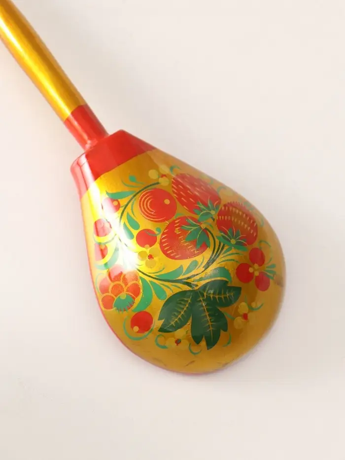 Погрузитесь в атмосферу народного мастерства с деревянной столовой ложкой, созданной в духе традиционной хохломской росписи. Её форма — полубаская, длина — 18.5 см, что делает её удобной для повседневного использования и одновременно выразительной как предмет декора. Основной цвет — золотистый, дополненный красными акцентами, создающими эффект праздника даже за самым простым столом.