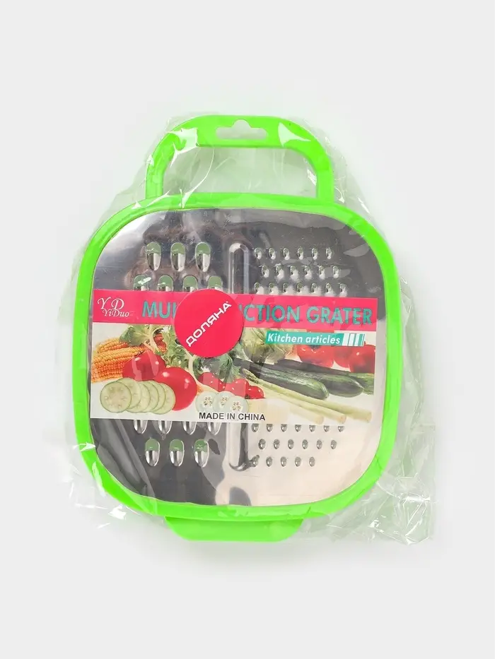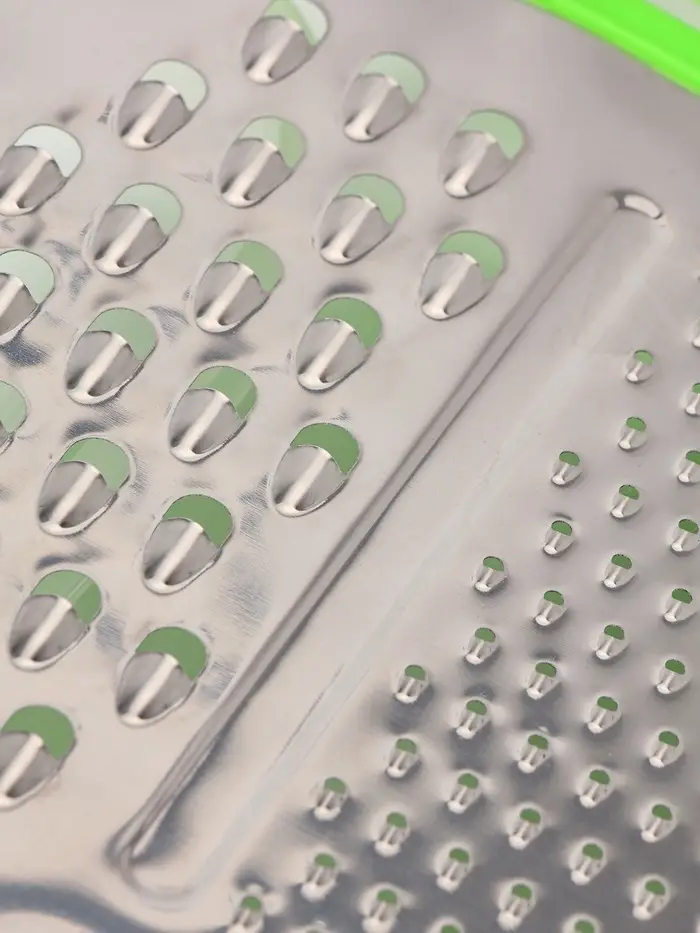 - Универсальность: тёрка подходит для измельчения разных продуктов — сыра, овощей, фруктов.