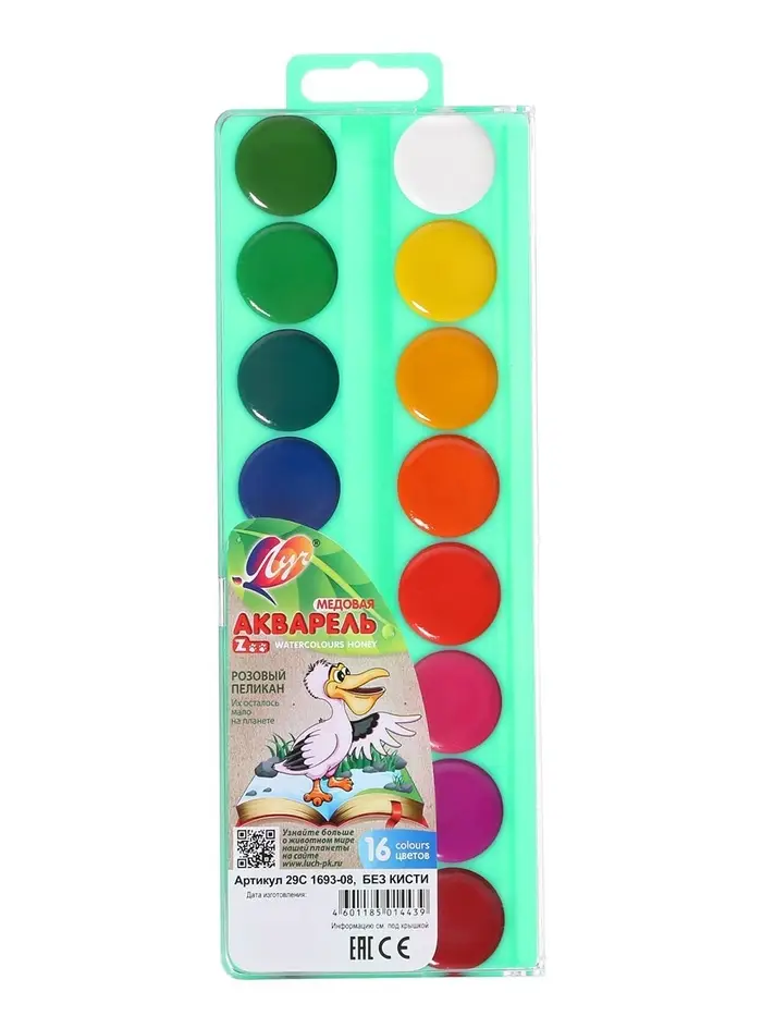 Акварель «Луч. ZOO», 16 цветов, без кисти