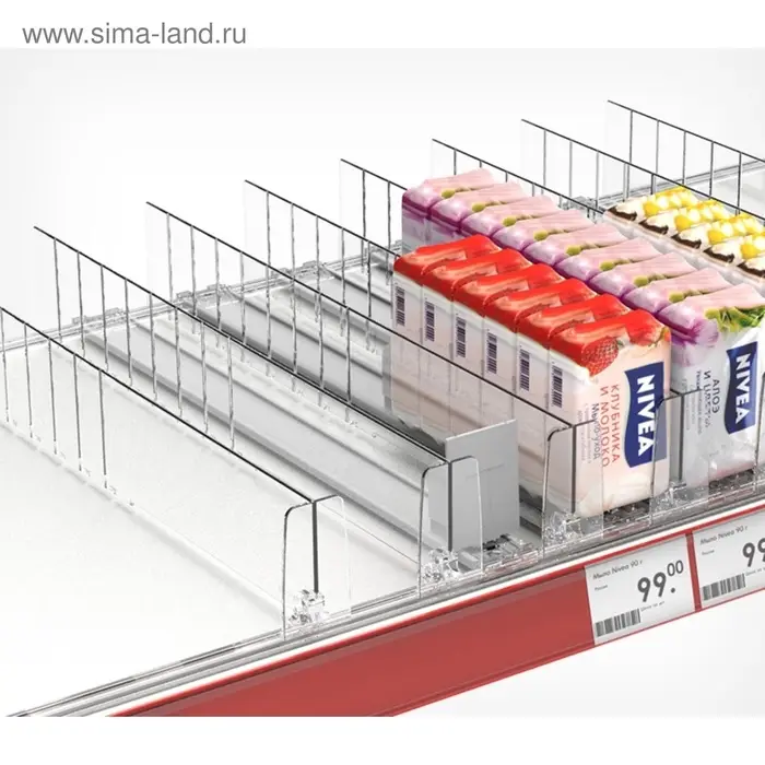 - Визуализация позиций улучшается благодаря прозрачности материала, из которого изготовлен разделитель, привлекая внимание покупателей и стимулируя спрос;