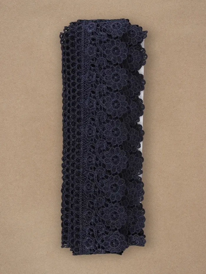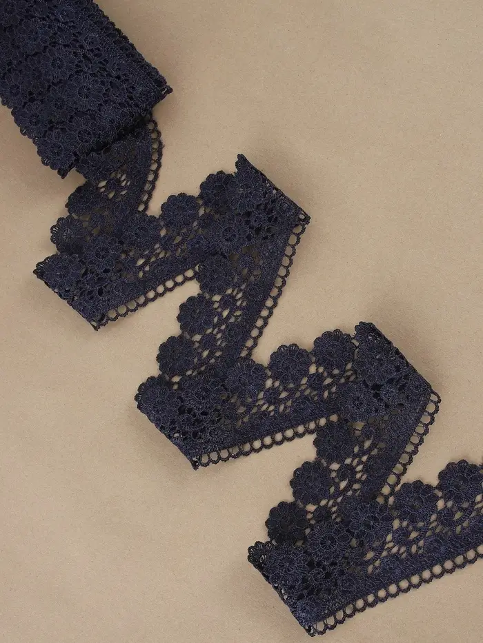 Темно-синее гипюровое кружево шириной 60 мм станет идеальным аксессуаром для тех, кто любит изящество и элегантность в своих рукодельных проектах. С полиэфирным материалом, это кружево плетено для долговечности и разнообразных применений.