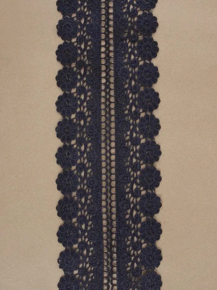 Кружево гипюровое, 60 мм, 6.8±0.5 м, тёмно-синее