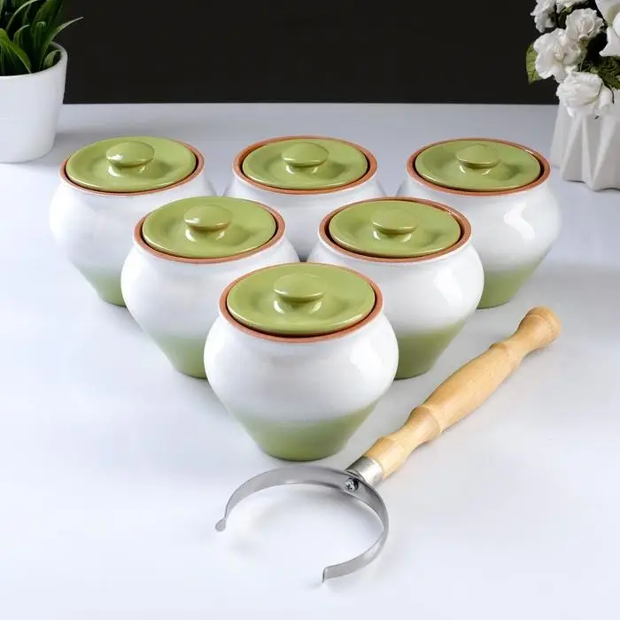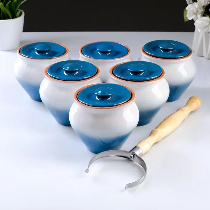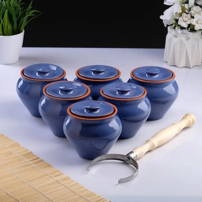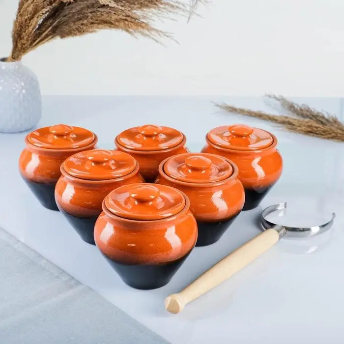 Горшочки для запекания Вятская керамика, набор 6 шт., ухват, 500 мл, МИКС