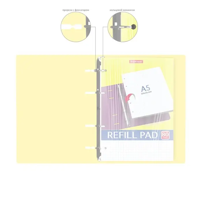 Сменный блок для тетради А4, на кольцах, 80 листов в клетку, Erich Krause