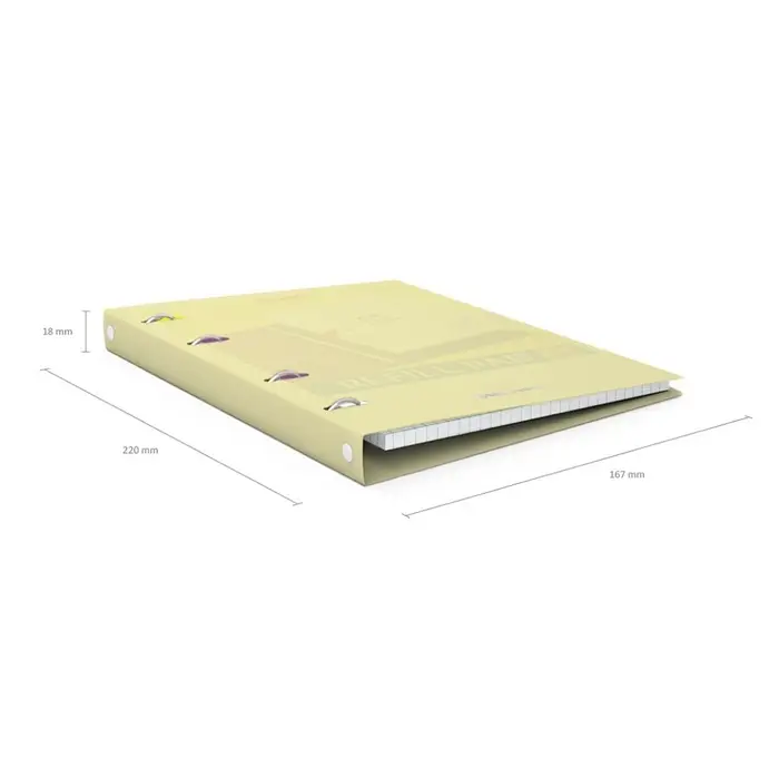 - Кольцевое крепление обеспечивает лёгкую замену и перестановку страниц.