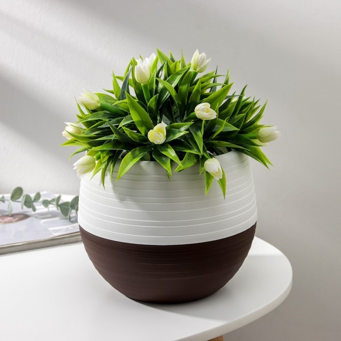 Горшок для цветов с поддоном «Япония», 2 л, белый-коричневый