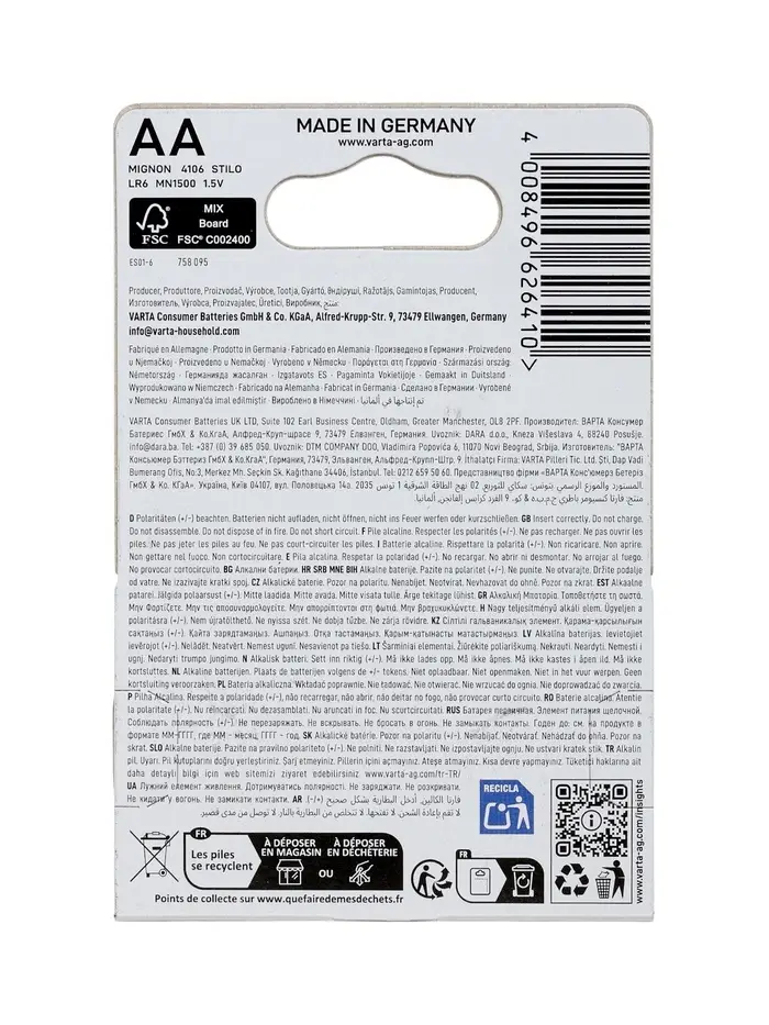 Батарейка алкалиновая Varta Energy, AA, LR6-4BL, 1.5 В, блистер, 4 шт.