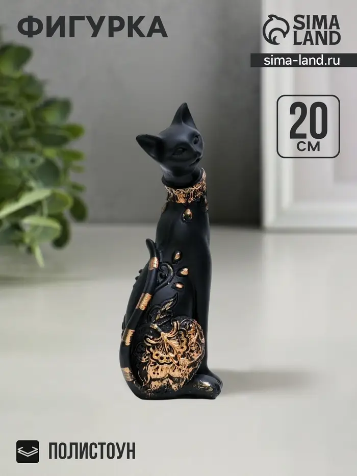 Фигурка полистоун «Кошка», чёрная, 20×8 см