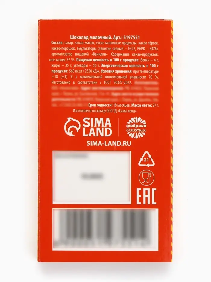 Состав: сухое цельное молоко, какао тёртое, масло какао, сухая молочная сыворотка, обезвоженный молочный жир, сахар, эмульгатор – соевый лецитин, ароматизатор, идентичный натуральному, «Ванилин».