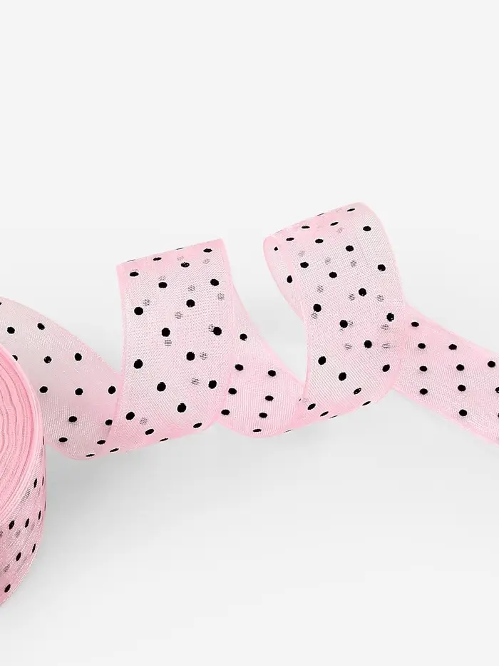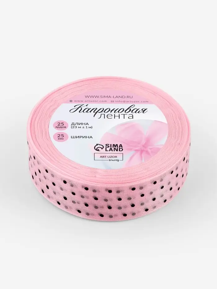 Розовая капроновая лента в горошек — яркий акцент для упаковки подарков, скрапбукинга и декора. Плотный нейлон держит форму, не выцветает со временем и подходит для творческих проектов. Игривый гороховый принт на нежном фоне создаёт лёгкое настроение.