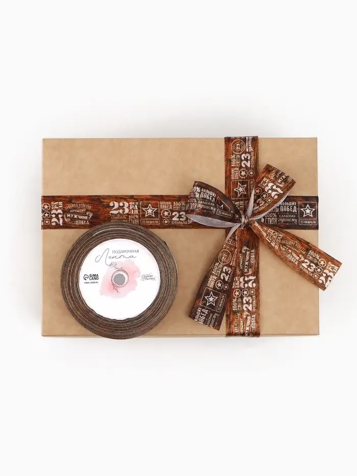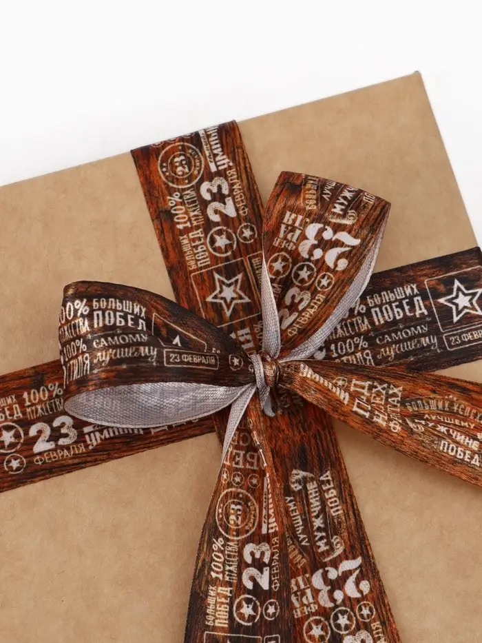 Лента атласная «23 февраля», 2.5 см × 22.5 (± 1) м, коричневая
