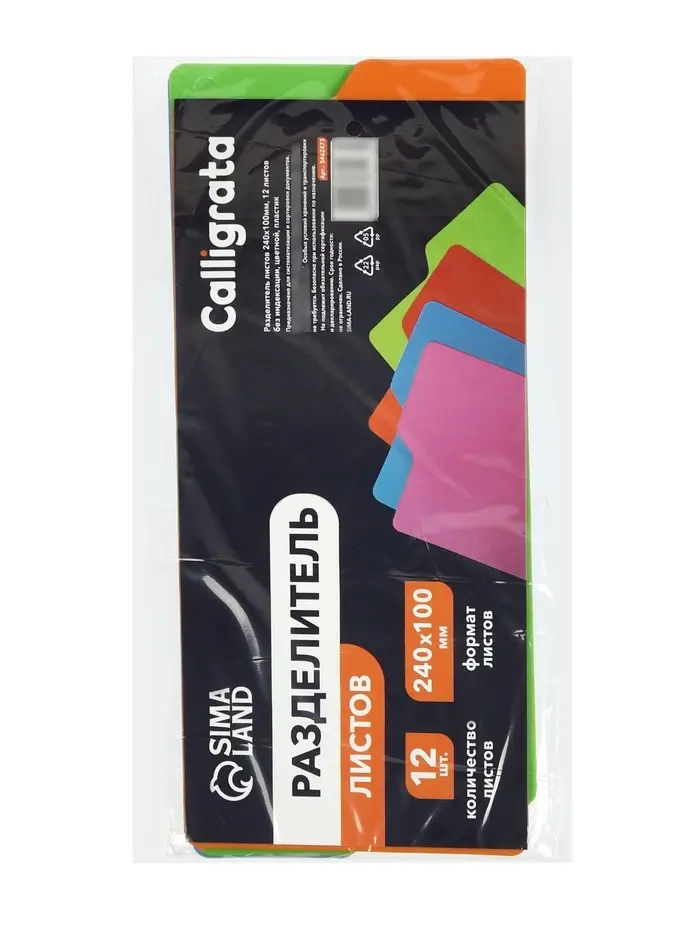 Набор разделителей листов 240×100 мм (для формата А4) Office-2000, 12 листов без индексации, 4 цвета, пластиковые
