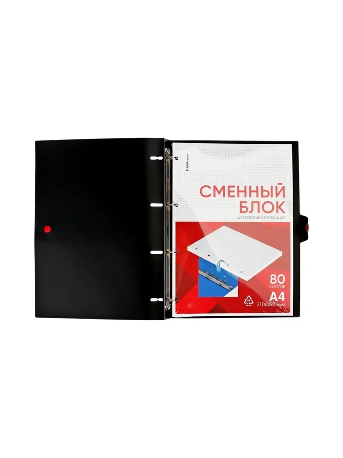 Сменный блок для тетради А4, на кольцах, 80 листов в клетку, Erich Krause