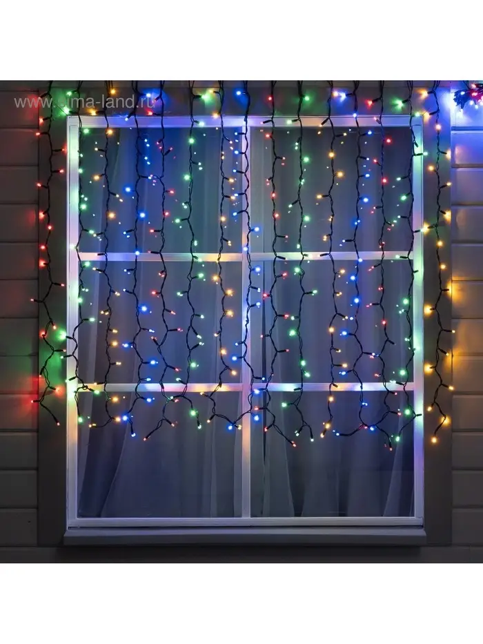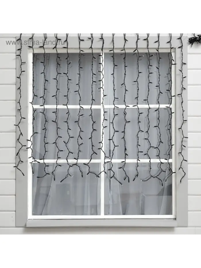Гирлянда «Занавес» 2×1.5 м, IP65, УМС, тёмная нить каучук, 300 LED, свечение мульти, 220 В