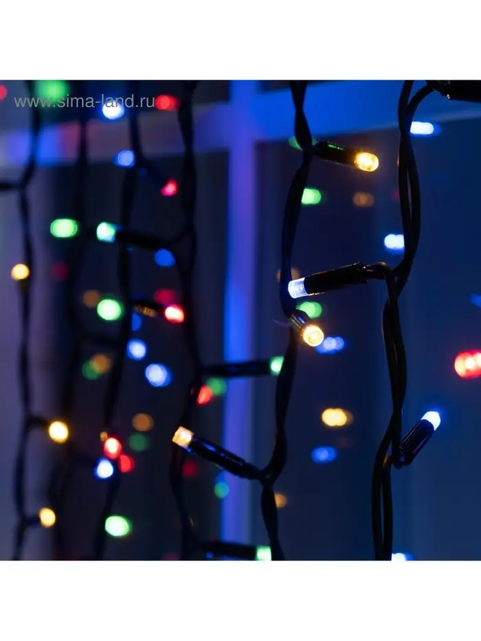 Гирлянда «Занавес» 2×3 м, IP65, УМС, тёмная нить каучук, 600 LED, свечение мульти, 220 В