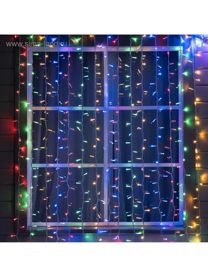 Гирлянда «Занавес» 2×3 м, IP65, УМС, белая нить каучук, 600 LED, свечение мульти, 220 В