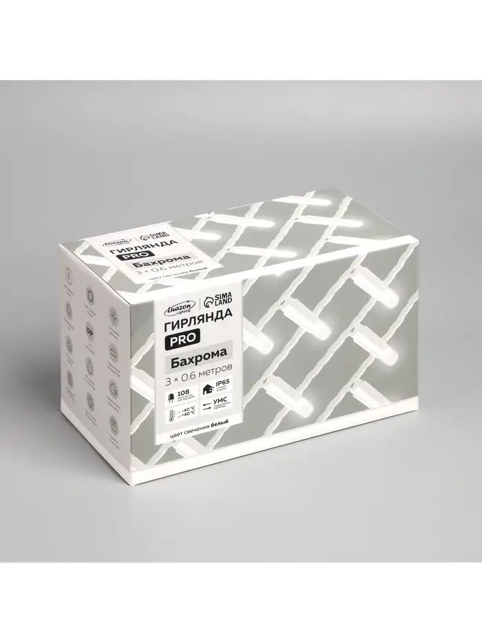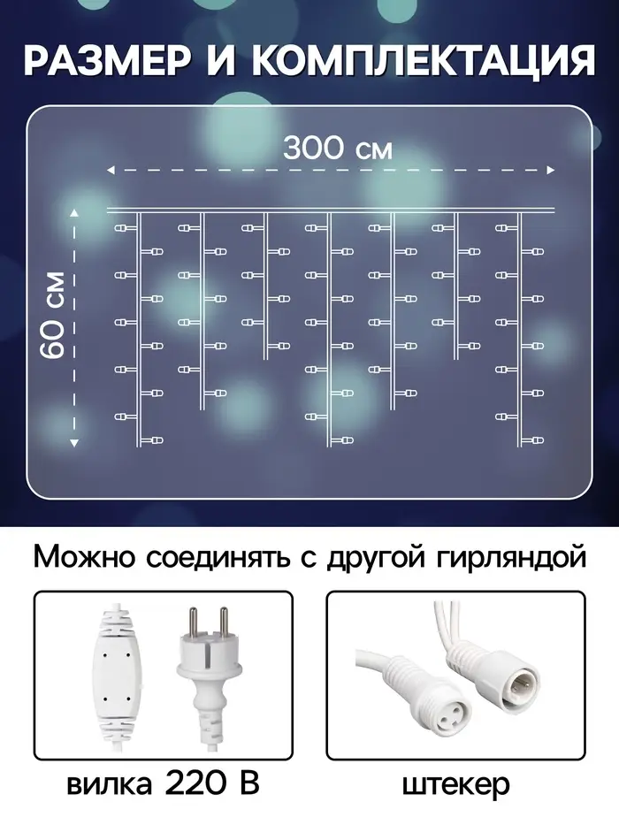 Гирлянда «Бахрома» 3×0.6 м, IP65, УМС, белая нить каучук, 108 LED, свечение белое, 220 В