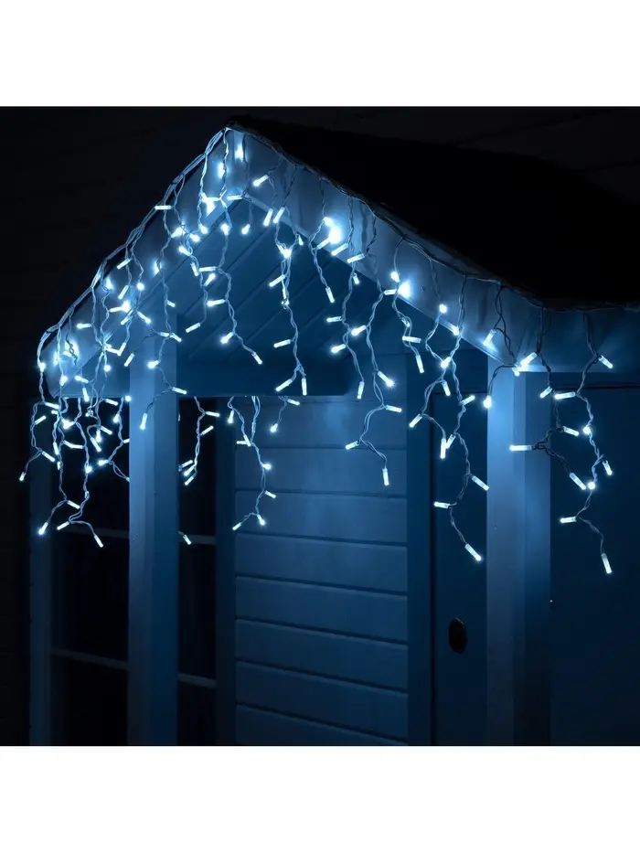 Гирлянда «Сосульки рифленые» 2.5×0.3 м, IP65, прозрачная нить, 192 LED, свечение белое с эффектом стекания, 12 В