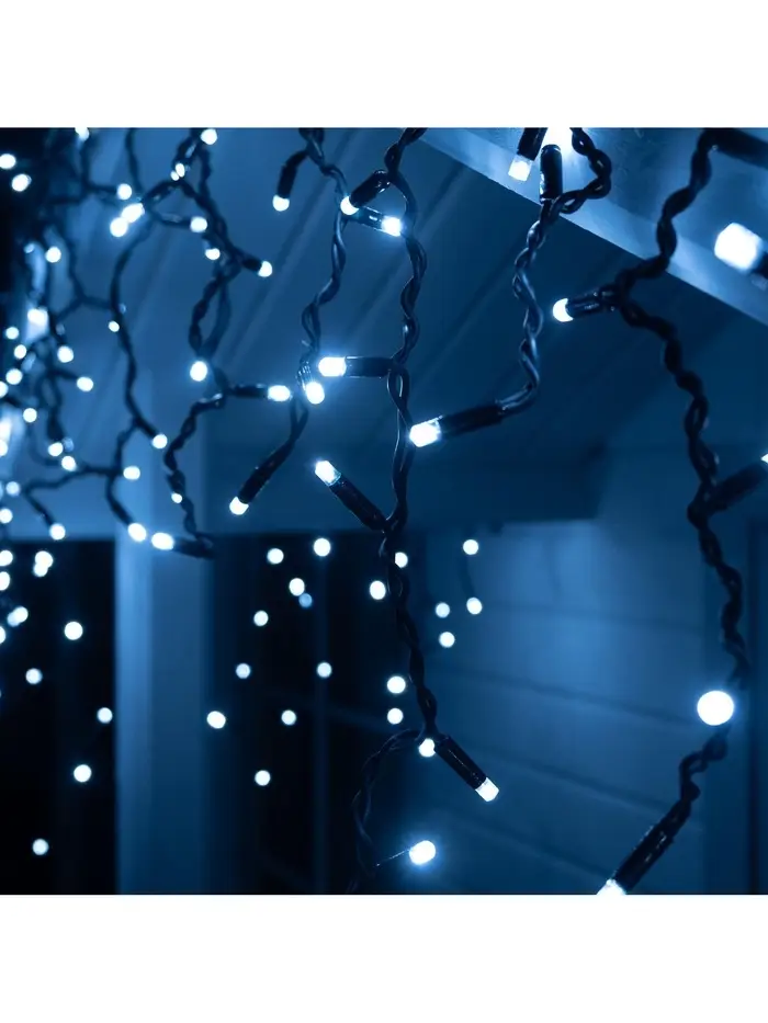 Гирлянда «Бахрома» 3×0.6 м, IP44, УМС, тёмная нить, 160 LED, свечение бело-синее, мигание, 220 В
