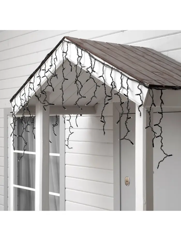 Гирлянда «Бахрома» 3×0.6 м, IP65, УМС, тёмная нить каучук, 108 LED, свечение белое, 220 В