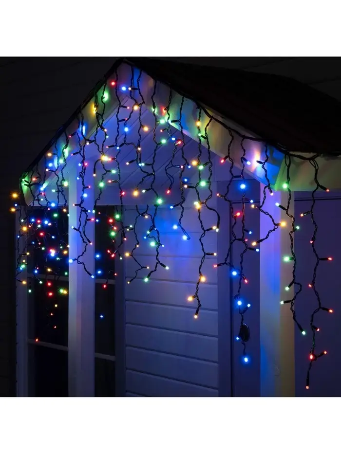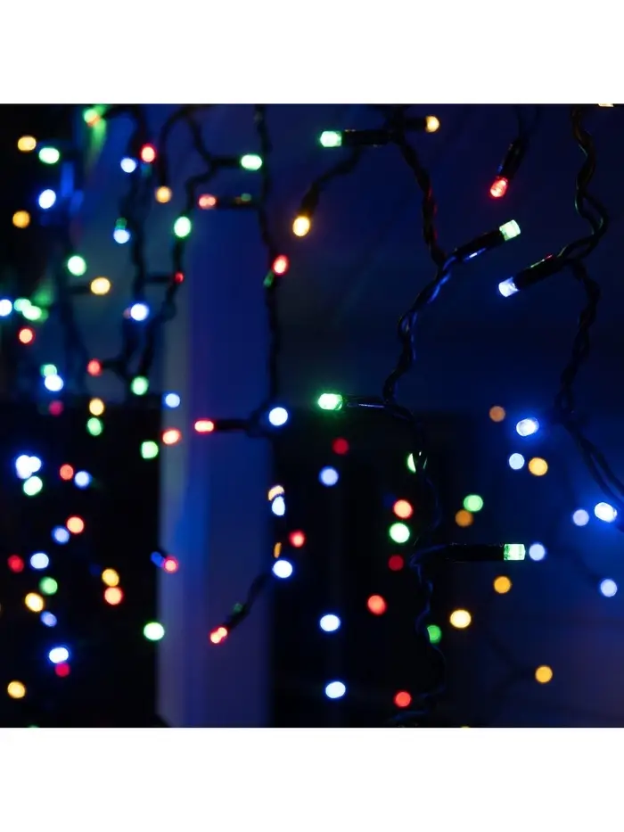 Гирлянда «Бахрома» 3×0.9 м, IP65, УМС, тёмная нить каучук, 144 LED, свечение мульти, 220 В