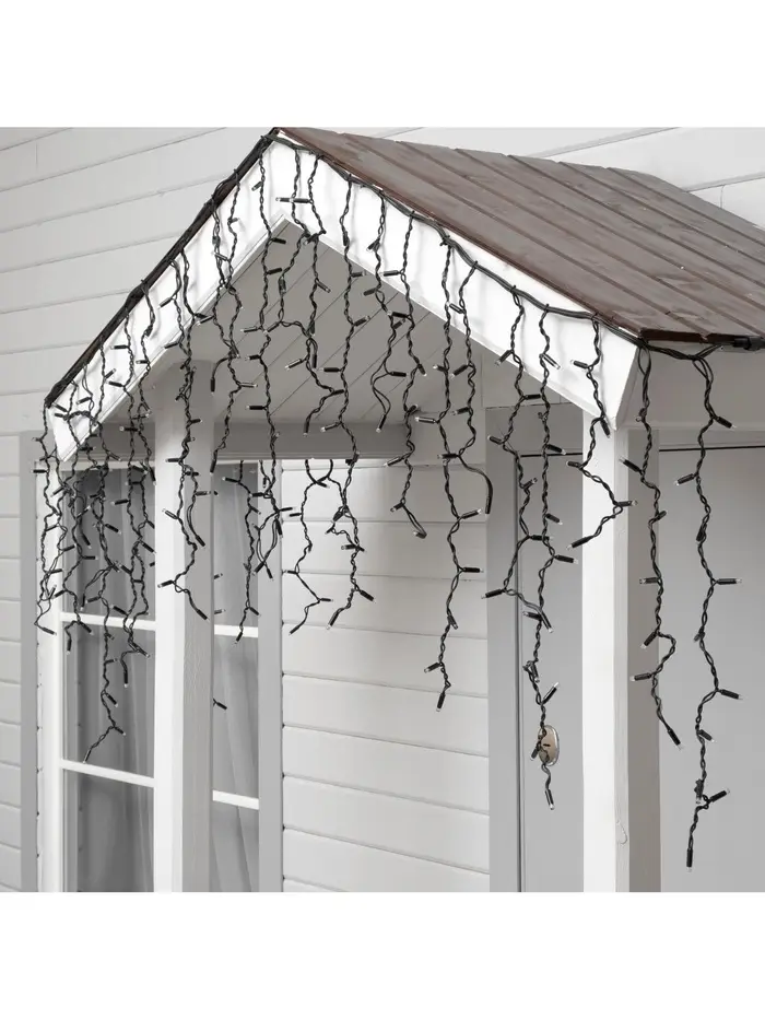 Гирлянда «Сосульки рифленые» 2.5×0.3 м, IP65, прозрачная нить, 192 LED, свечение белое с эффектом стекания, 12 В