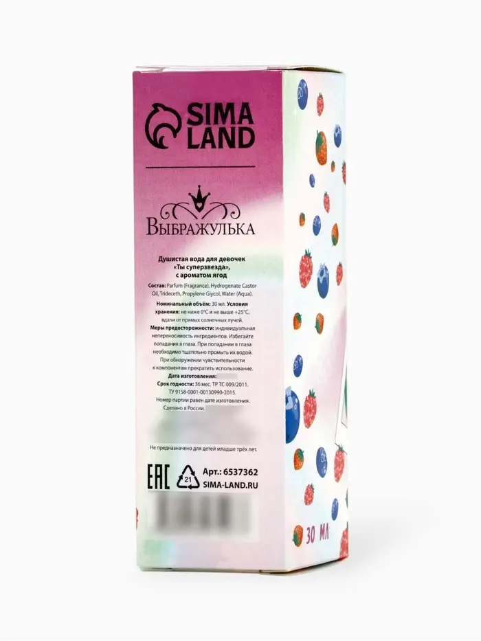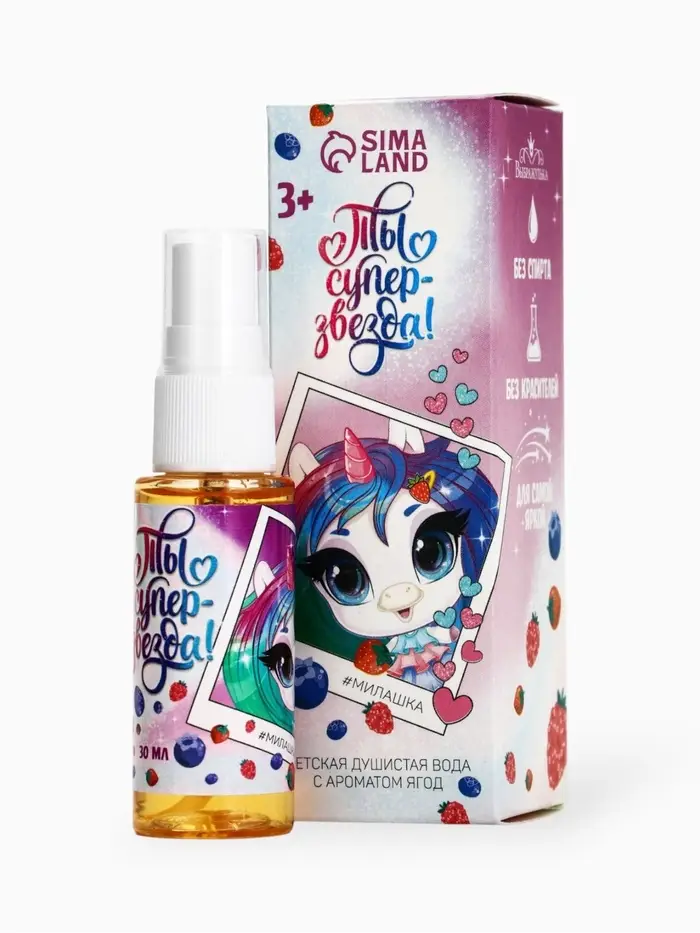Душистая вода для девочек «Ты суперзвезда» с ароматом ягод отлично подойдёт в качестве первого парфюма малышки. Аромат сладкий, лёгкий и нежный, не слишком насыщенный — как раз для маленькой леди.