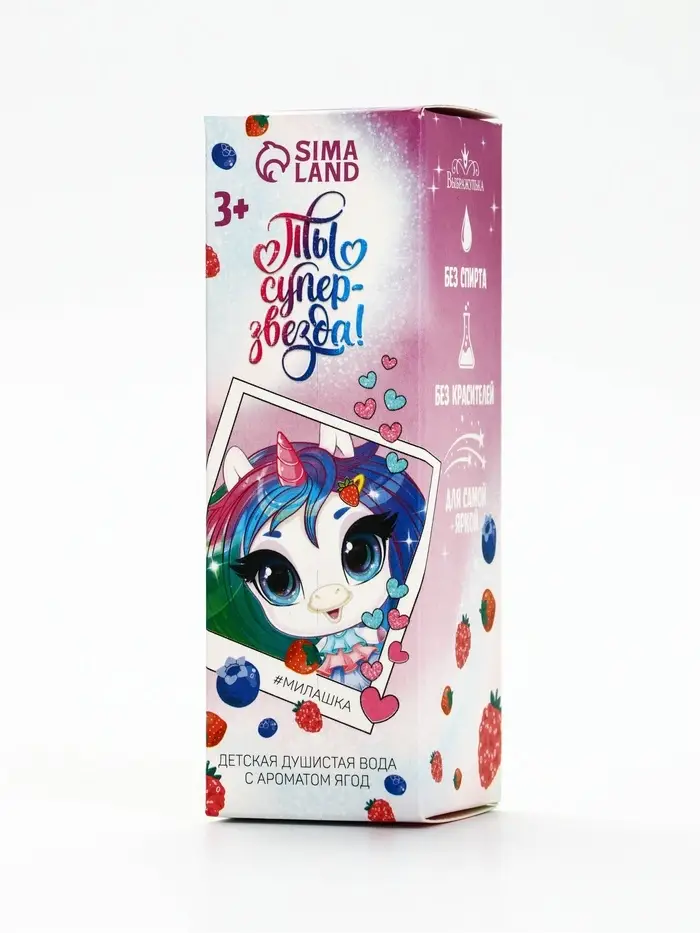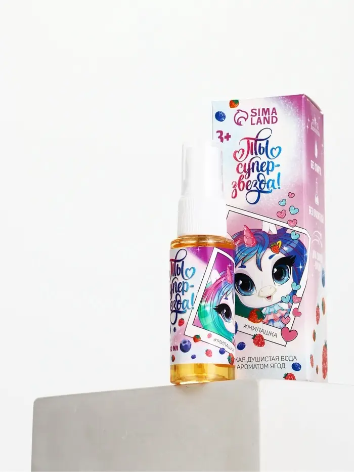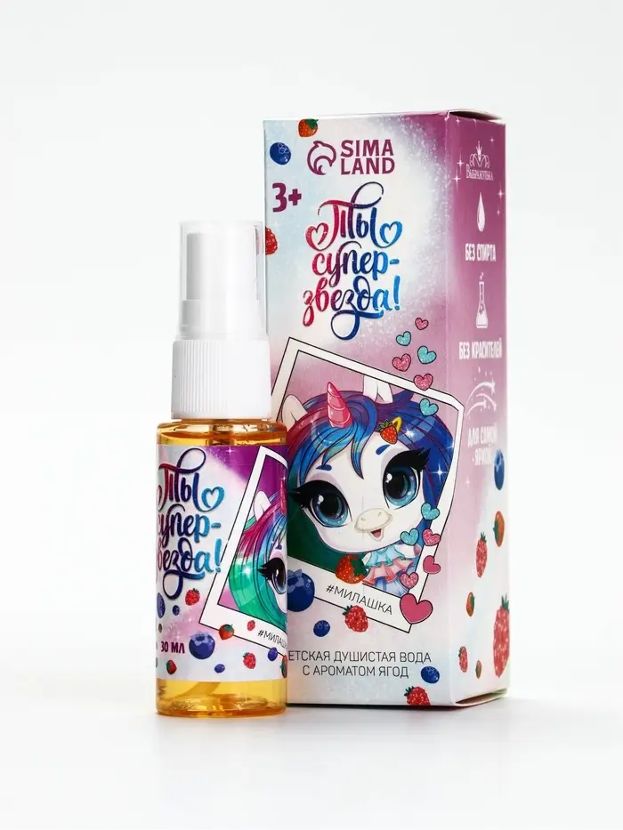Душистая вода для девочек «Ты суперзвезда» с ароматом ягод отлично подойдёт в качестве первого парфюма малышки. Аромат сладкий, лёгкий и нежный, не слишком насыщенный — как раз для маленькой леди.