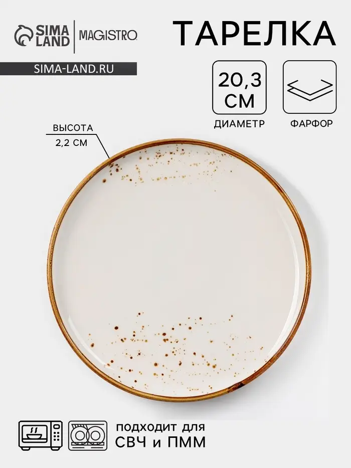 Тарелка Magistro «Церера», d=20.3 см, фарфор, белая