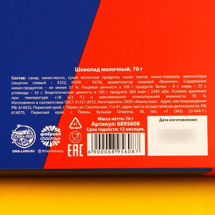 Шоколад молочный «Скушай шоколадку», 27 г.