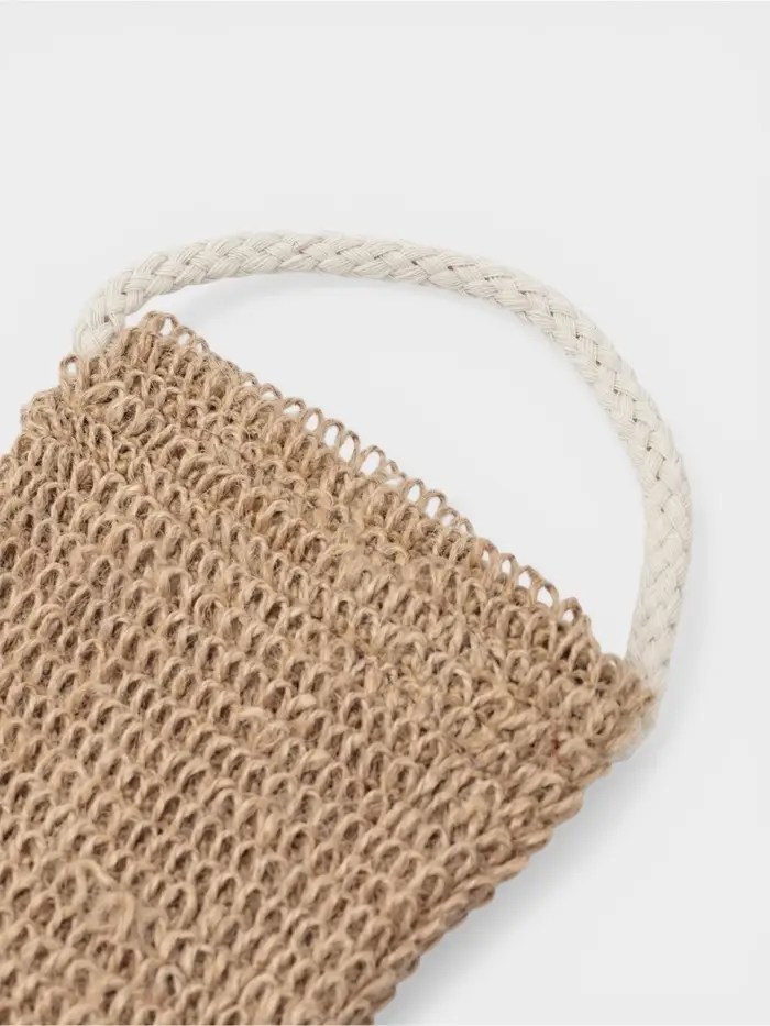 Изготавливается мочалка из натурального материала, который проходит обработку в несколько этапов. Она отличается жёсткостью и шероховатостью, благодаря чему глубоко отшелушивает эпидермис.