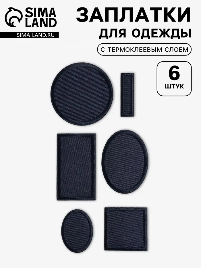 Набор заплаток для одежды, термоклеевые, 6 шт., чёрный