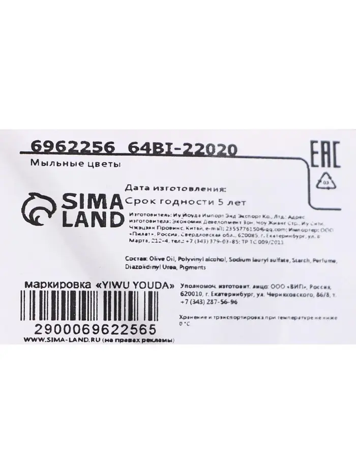 Состав: Olive Oil, Polyvinyl alcohol, Sodium lauryl sulfate, Starch, Perfume, Diazolidinyl Urea, Pigments.