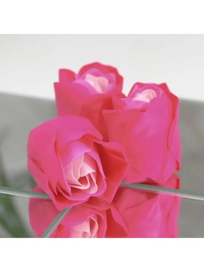 Благодаря точному повторению мелких деталей мыльные розы схожи с настоящими цветами. Композиция наполняет помещение тонким и ненавязчивым цветочным ароматом.