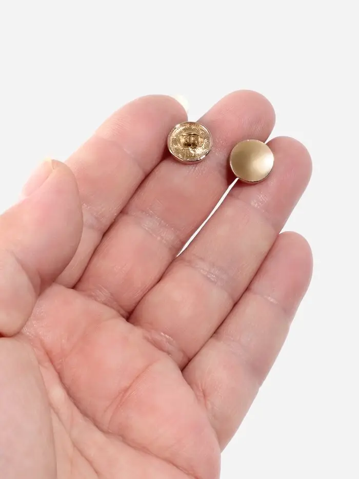 Набор металлических пуговиц на ножке диаметром 11 мм в золотой отделке — это практичный и элегантный элемент для оформления блузок, рубашек и другой верхней одежды. Их небольшой размер и качественный материал делают их универсальным решением для швейных проектов и обновления гардероба.