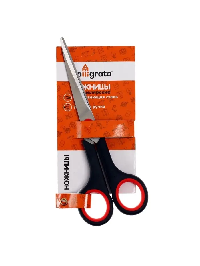 Ножницы канцелярские 17 см, ручки пластиковые с резиновыми вставками