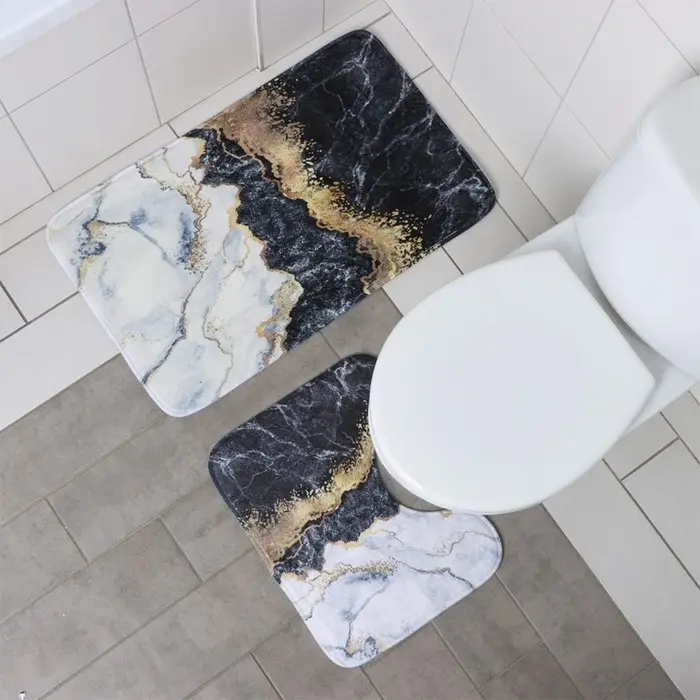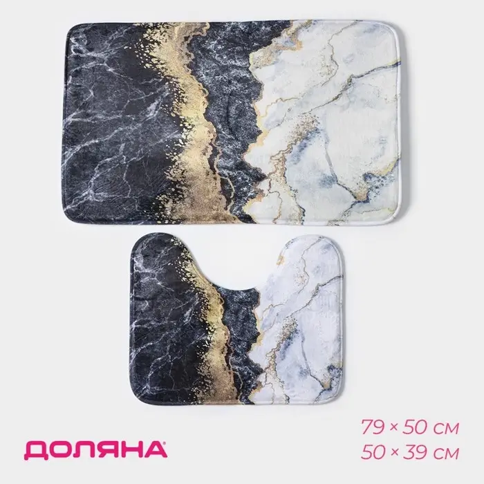 Коврики для ванной и туалета Доляна «Мрамор», 2 шт., 79×50 см, 50×39 см