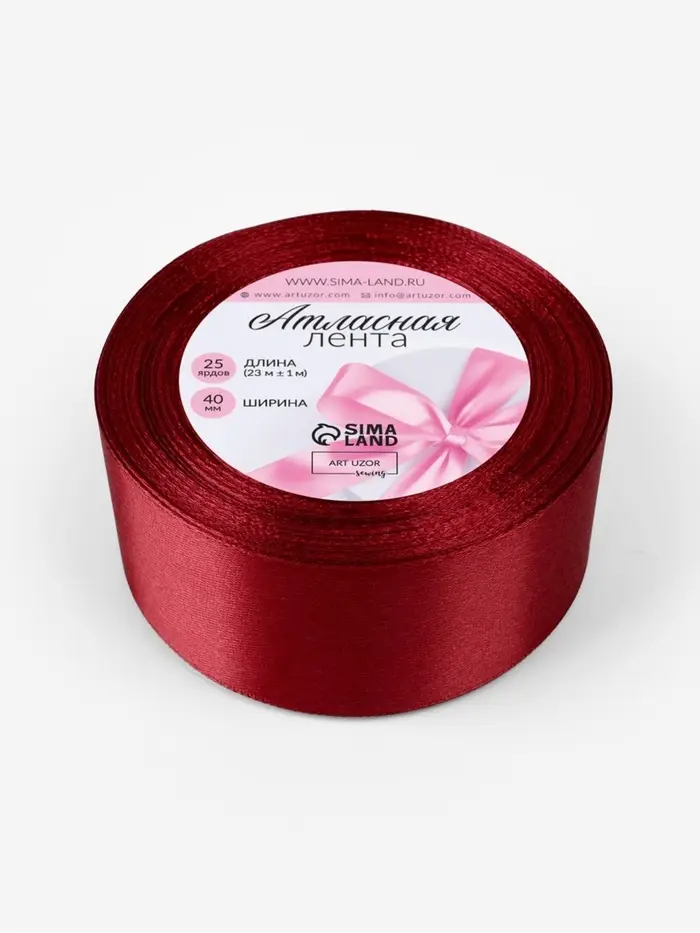 Лента атласная, 40 мм, 23±1 м, бордовая №48