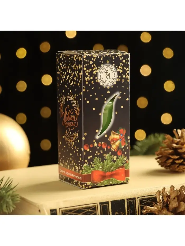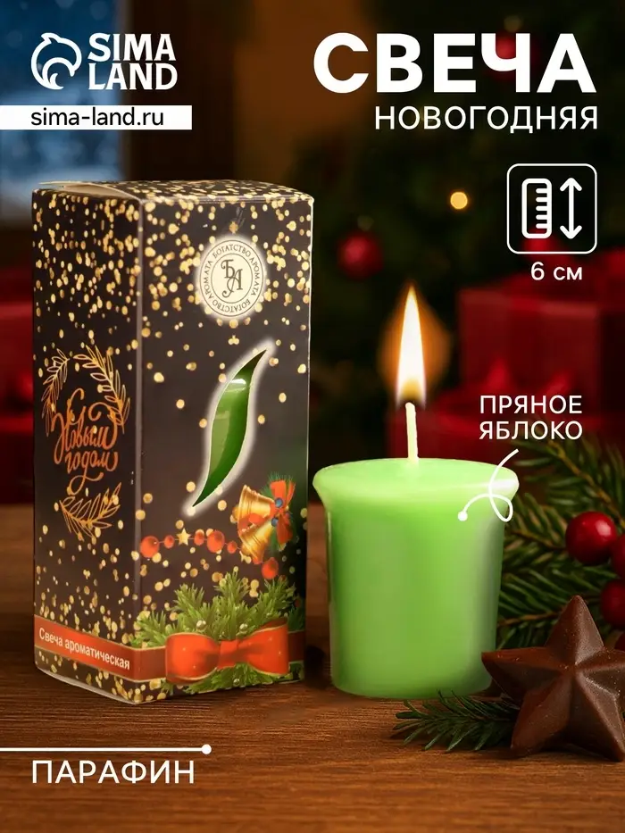 Свеча ароматическая «Счастливого Нового года», 4×6 см, пряное яблоко, в коробке