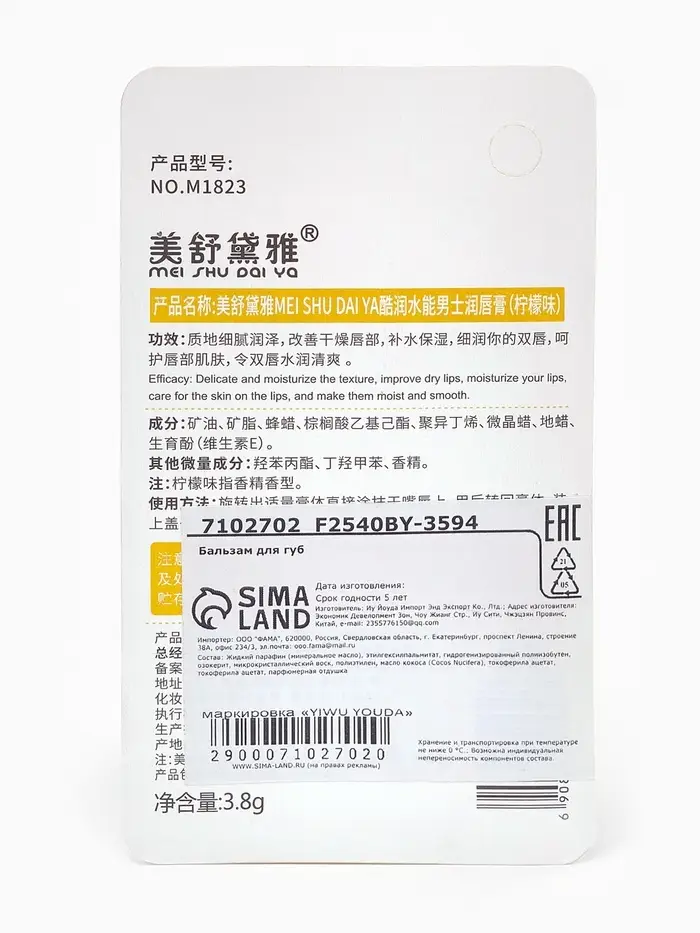 Мужская гигиеническая помада для губ с экстрактом лимона
