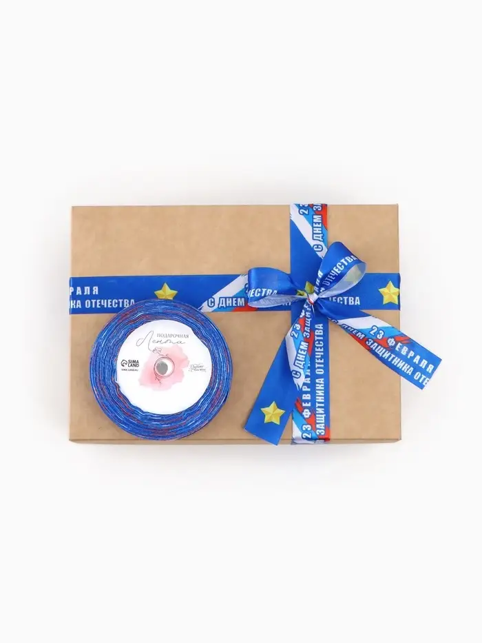 Лента атласная «С Днём защитника Отечества», 2.5 см × 22.5 (± 1) м, синяя