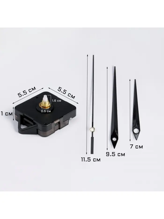 Чёрный цвет стрелок подчёркивает стиль и элегантность, а сочетание металла и пластика гарантирует надёжность и долговечность механизма. Благодаря плавному ходу стрелок отсутствуют раздражающие тиканья, что делает этот механизм идеальным выбором для спальни, офиса или гостиной.