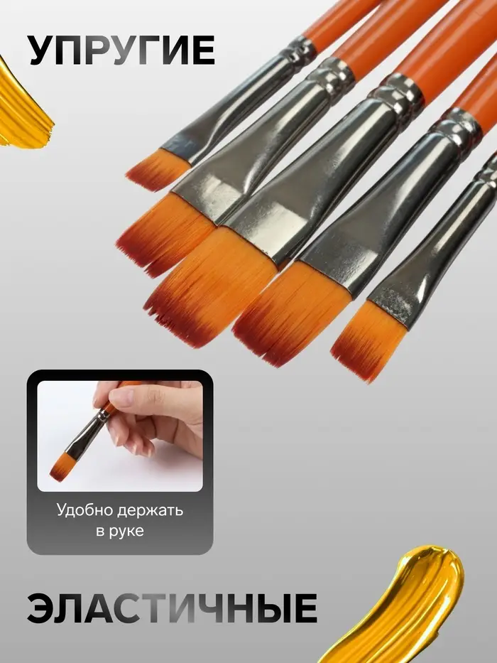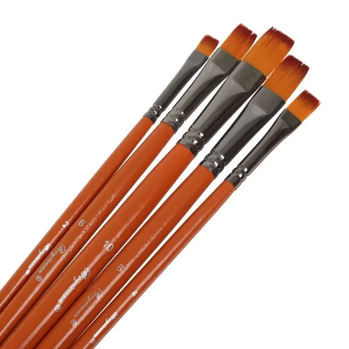 Плоская форма кисти создает ровные мазки с четкими границами, что важно для закрашивания крупных областей и создания геометрических элементов. Синтетический ворс сохраняет упругость при работе с акварелью и гуашью, обеспечивая контроль над потоком краски. Длинная ручка удобно лежит в руке как при работе за столом, так и на мольберте. Набор включает все необходимые размеры для поэтапного освоения техники плоской кисти.
