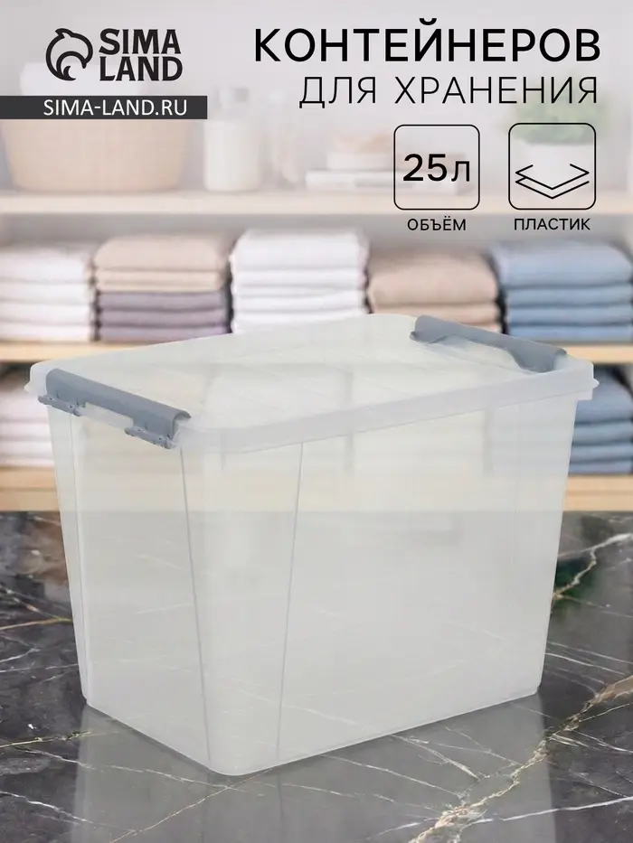 Прозрачный контейнер с крышкой объёмом 25 литров — это вместительное и практичное решение для хранения вещей дома, на даче или в гараже. Его прозрачные стенки и надёжная конструкция делают его незаменимым помощником в поддержании порядка.
