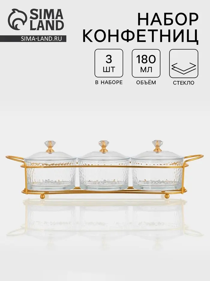 Набор конфетниц «Богема», на подставке 33×9.5×8.5, 3 шт., стекло