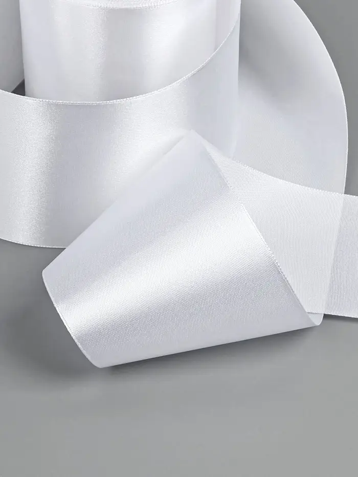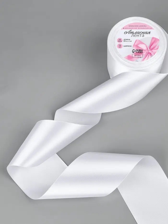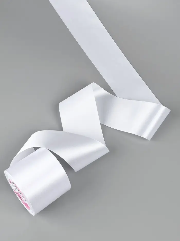 Белая атласная лента 75 мм подойдёт для оформления крупных декоративных элементов в свадебном и праздничном декоре. Широкий формат подчёркивает торжественность, помогает создать выразительный бант или стильно оформить подарочную упаковку. Гладкий блеск придаёт изделиям аккуратный и цельный внешний вид без дополнительного декора.