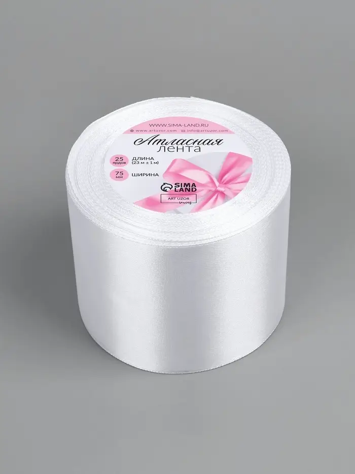 Лента атласная, 75 мм, 23±1 м, белая №01